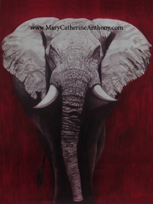 Growing up in Alabama, Mary Catherine has always been a huge football fan which inspired her to draw an Elephant with graphite pencil and colored pencil. This project has taken her around a year to complete. Although, the original is SOLD, prints are available through the website.